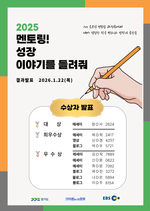 「2025 멘토링! 성장 이야기를 들려줘」 공모전에 참여해 주신 모든 분들께 감사드립니다.